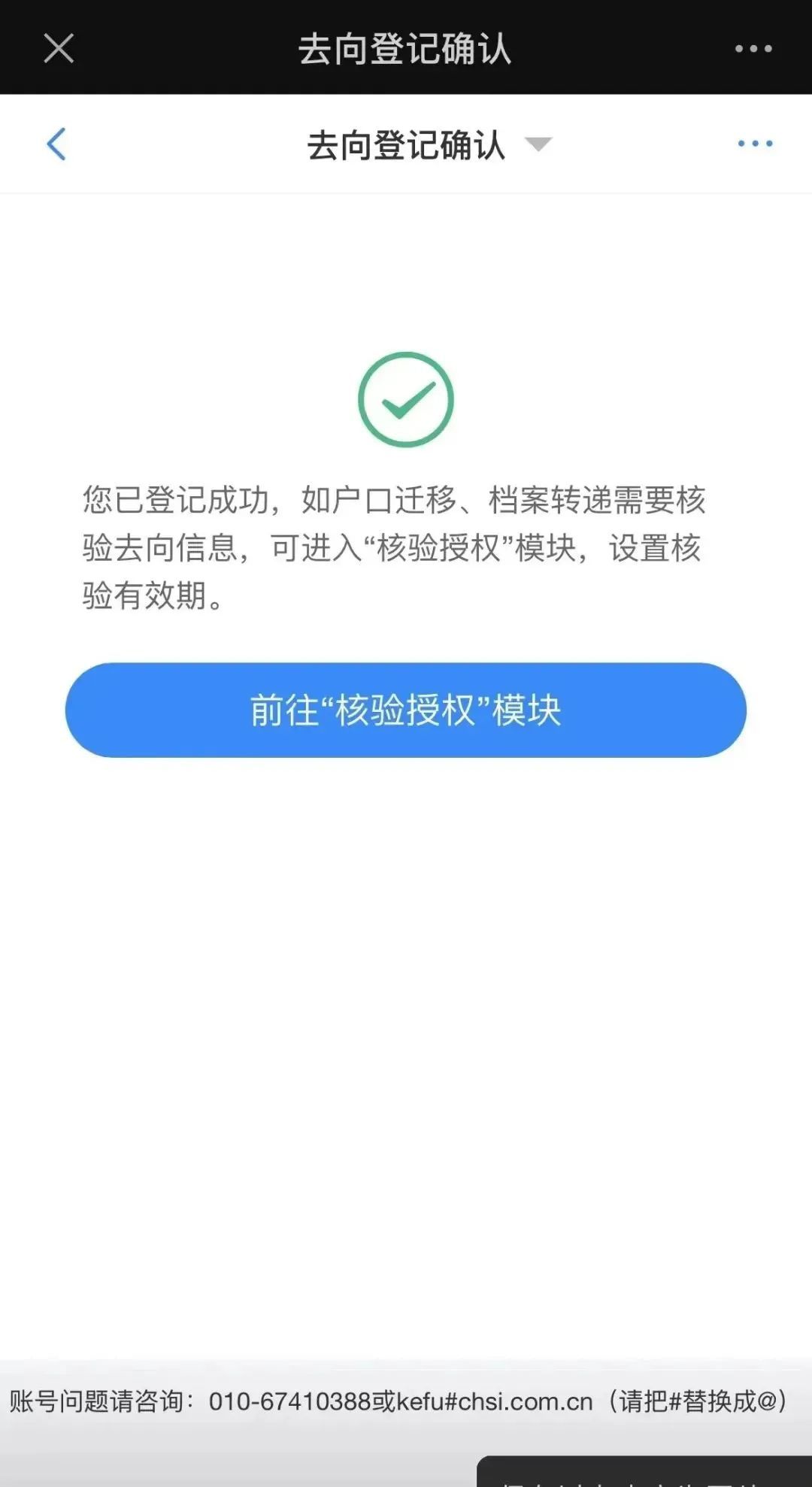 毕业生核验授权后,档案接收管理部门在办理相关手续时,可查询核验毕业生离校时相应的去向登记信息。